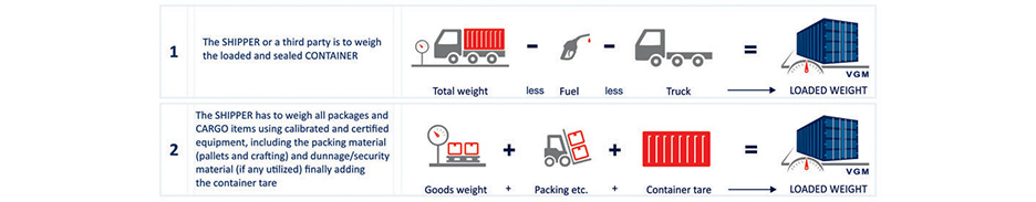 - Transshipment handling at the ports of IMO Member States must also have the VGM available. Shippers are requested to communicate the VGM to us before the 1st loading port to avoid any transshipment delays and costs.